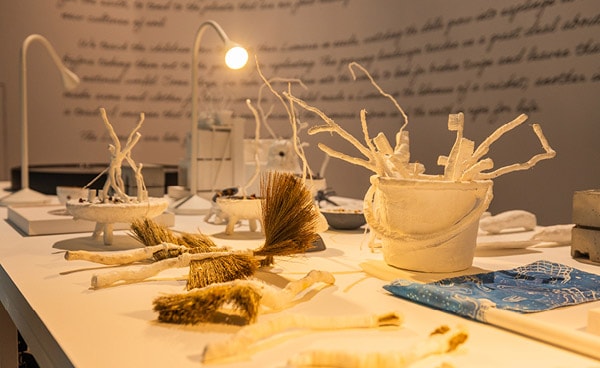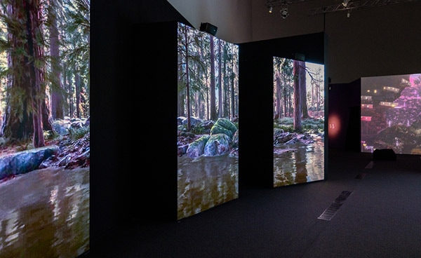Meskipun rimbun dan hijau, hutan yang menyambut pengunjung sepenuhnya sintetik, sebuah gestur penuh makna yang menyoroti tensi utama pameran antara alam dan buatan. Dengan menyulap lanskap yang menggugah sekaligus tak nyata, galeri ini mengajak kita untuk merenungkan bagaimana ingatan dan imajinasi membentuk pemahaman kita tentang dunia alami. Ekologi buatan ini menjadi metafora masa depan yang kita bangun: berakar pada tradisi, namun dimediasi teknologi dan desain.