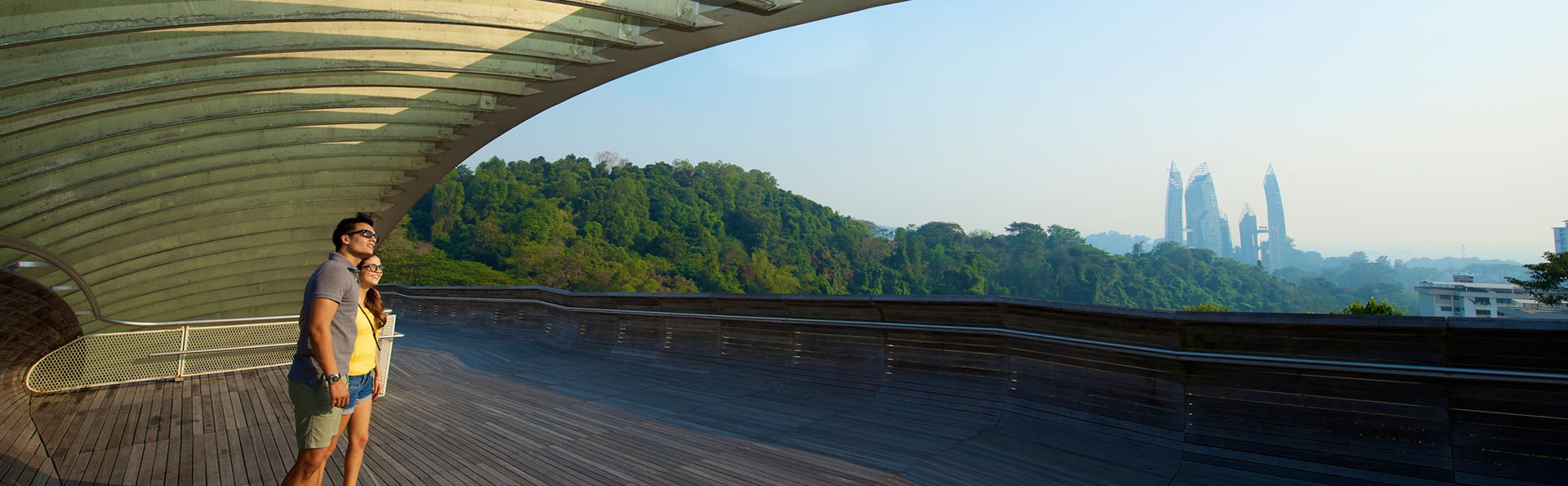 Menjauhlah dari kota dan masuki area hijau yang rimbun di banyak taman di Singapura. Bersepeda atau berjalan kakilah di sepanjang Park Connector yang menarik dan memesona ini, tempat Anda dapat menemui kanal, sungai, lingkungan permukiman yang tenang, pepohonan yang indah, dan kesempatan berfoto yang memukau. Jangan lewatkan titik-titik utama seperti Henderson Waves Bridge dan Treetop Walk di bagian Southern Ridges taman. Situs web National Parks akan memberi Anda informasi dan peta komprehensif. Semua jalur mudah dilalui dengan berjalan kaki untuk hampir semua level kebugaran, ramah anak-anak, dan sangat terkoneksi dengan transportasi umum sehingga Anda dapat menaiki taksi kapan pun Anda merasa lelah.